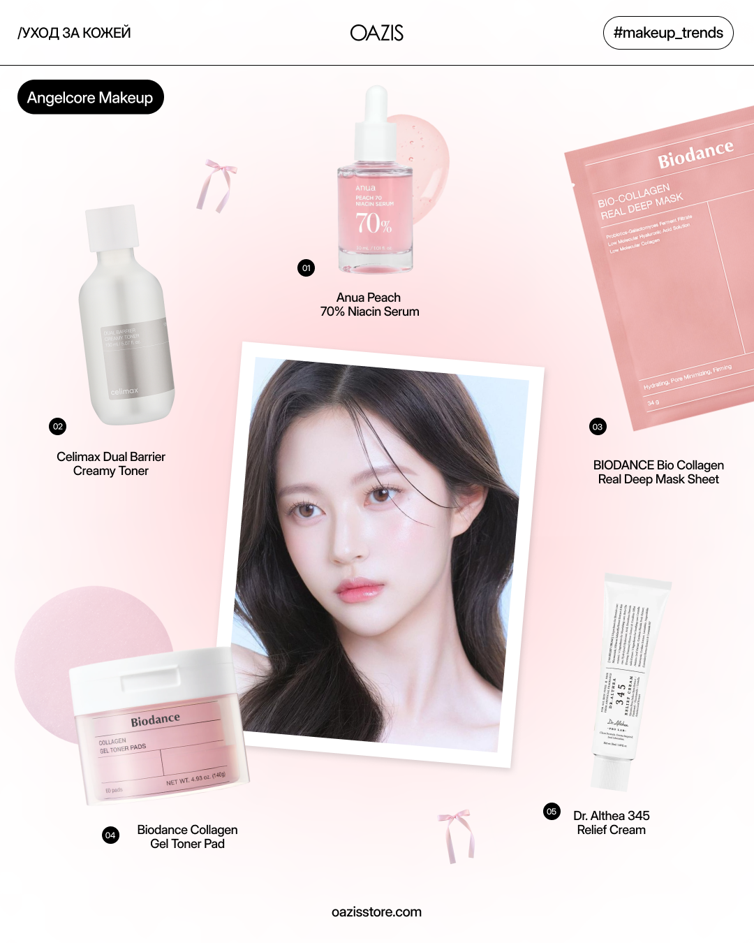Этот тренд покорил сердца модниц и beauty-экспертов по всему миру! 🌸 Angel Core — это нежный, воздушный стиль, который сочетает в себе элементы элегантности, лёгкости и мистической красоты. И, конечно же, не обойтись без идеального макияжа и аксессуаров, чтобы подчеркнуть свой ангельский образ!