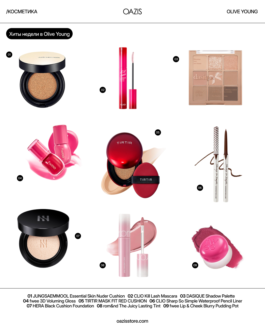 Olive Young — ведущая сеть корейской косметики, где можно найти самые актуальные тренды в уходе за кожей, волосами и макияжем.